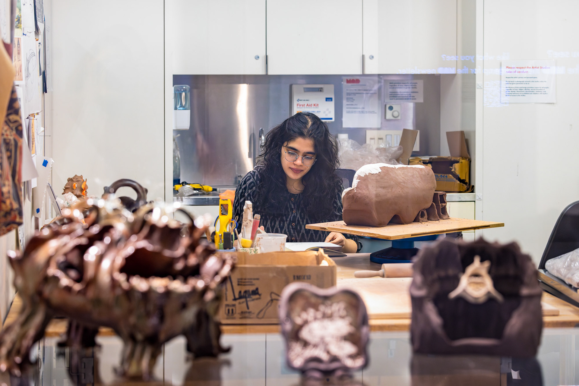 Rhea Barve received her BFA from New York University in 2022 with a concentration in ceramics and animation. Her work has been exhibited in New York at Smack Mellon, 80 WSE Gallery, 81 Leonard Gallery, and on Governors Island. Raised in Bengaluru, India, Rhea currently lives and works in Brooklyn, New York.